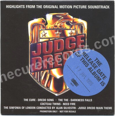 Cardsleeve. 4 track sampler with track "Dredd song". Front sticker on front states release date "17 JUL 1995".