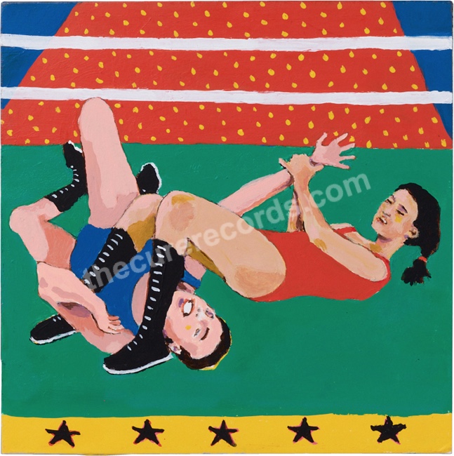 One-sided. Blue vinyl. Number 004. Artist: Alan Fears. Medium: Acrylic Paint.