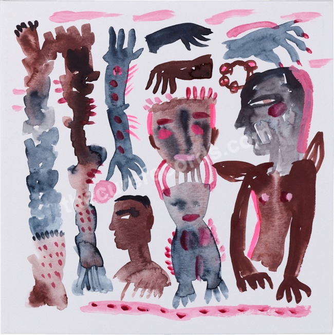 One-sided. Blue vinyl. Number 055. Artist: Nicola Heindl. Medium: Watercolour.