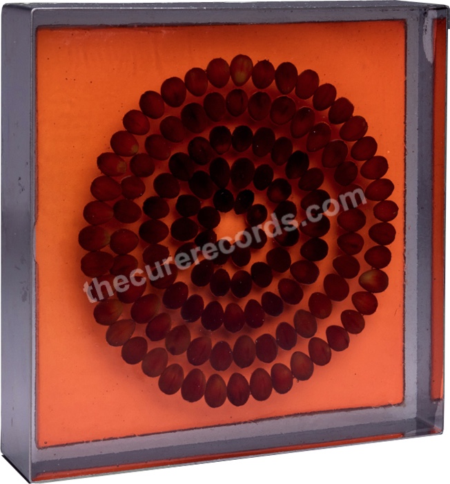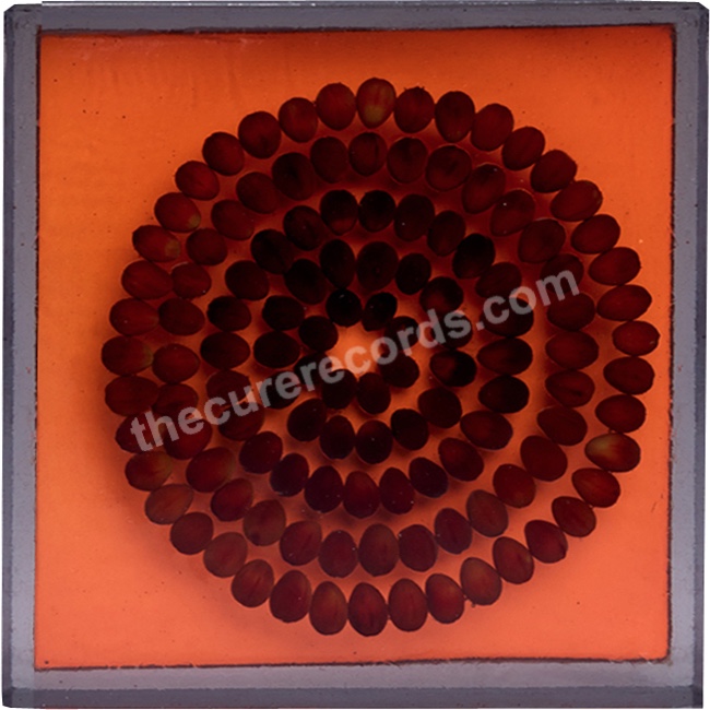 One-sided. Blue vinyl. Number 056. Artist: Harrison Albrecht. Medium: Seeds in resin.