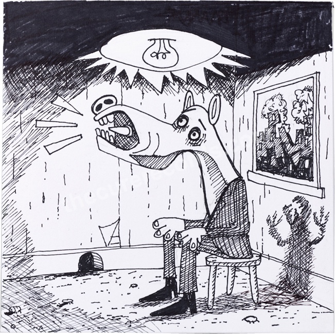 One-sided. Blue vinyl. Number 111. Artist: Pete McKee. Medium: Pen.